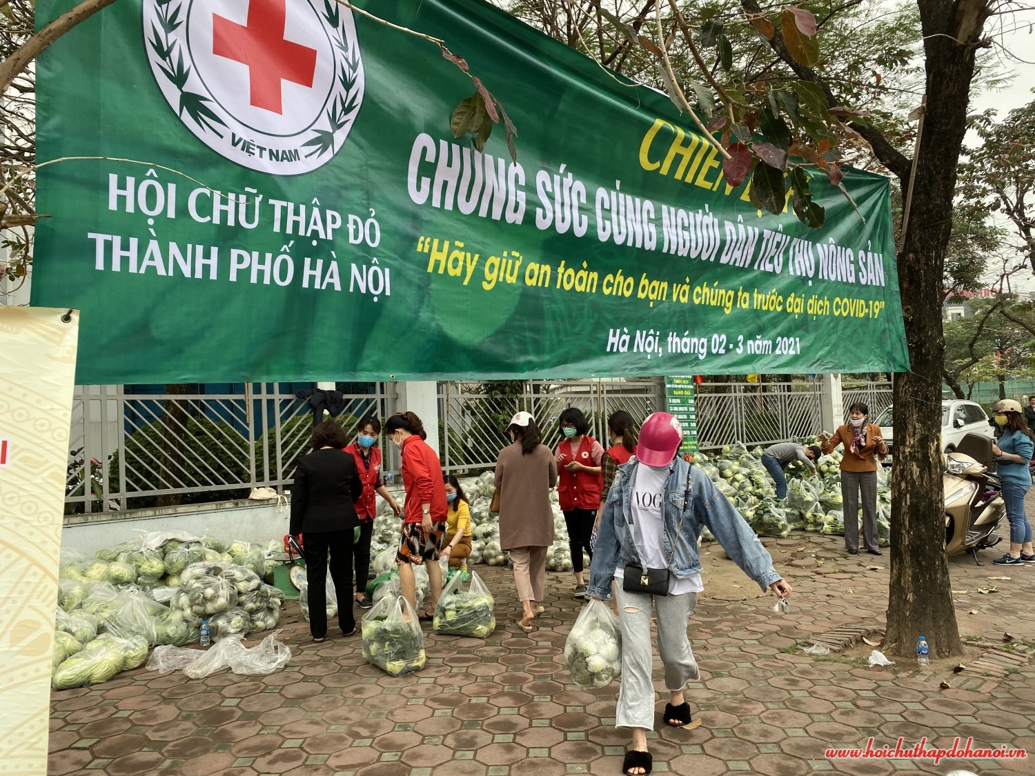Do ảnh hưởng của dịch bệnh tại tỉnh Hải Dương, Hội Chữ thập đỏ thành phố Hà Nội khẩn trương phối hợp Hội Chữ thập đỏ tỉnh Hải Dương tiêu thụ những mặt hàng nông sản nhằm giúp đỡ người dân vượt qua khó khăn giai đoạn này. Mở đầu hoạt động, sáng ngày 24/2/2021, tại số 61 Trần Quốc Vượng, Q. Cầu Giấy, Hội Chữ thập đỏ thành phố Hà Nội, Hội Chữ thập đỏ quận Cầu Giấy tổ chức điểm tiêu thụ nông sản hỗ trợ người dân Hải Dương.